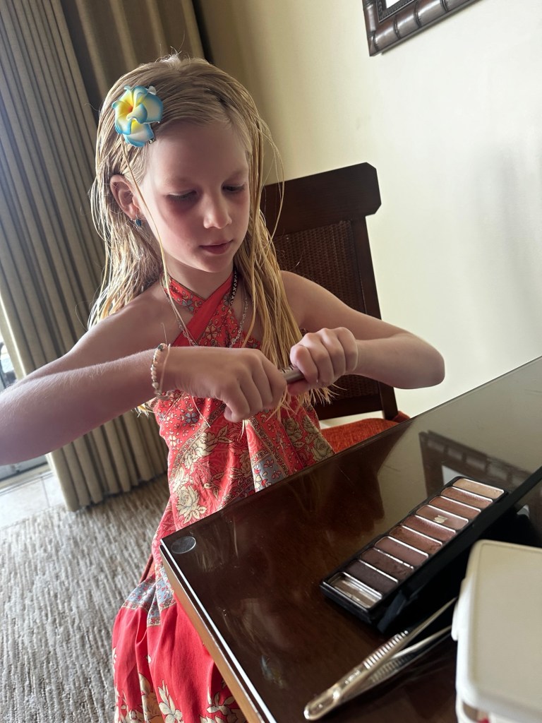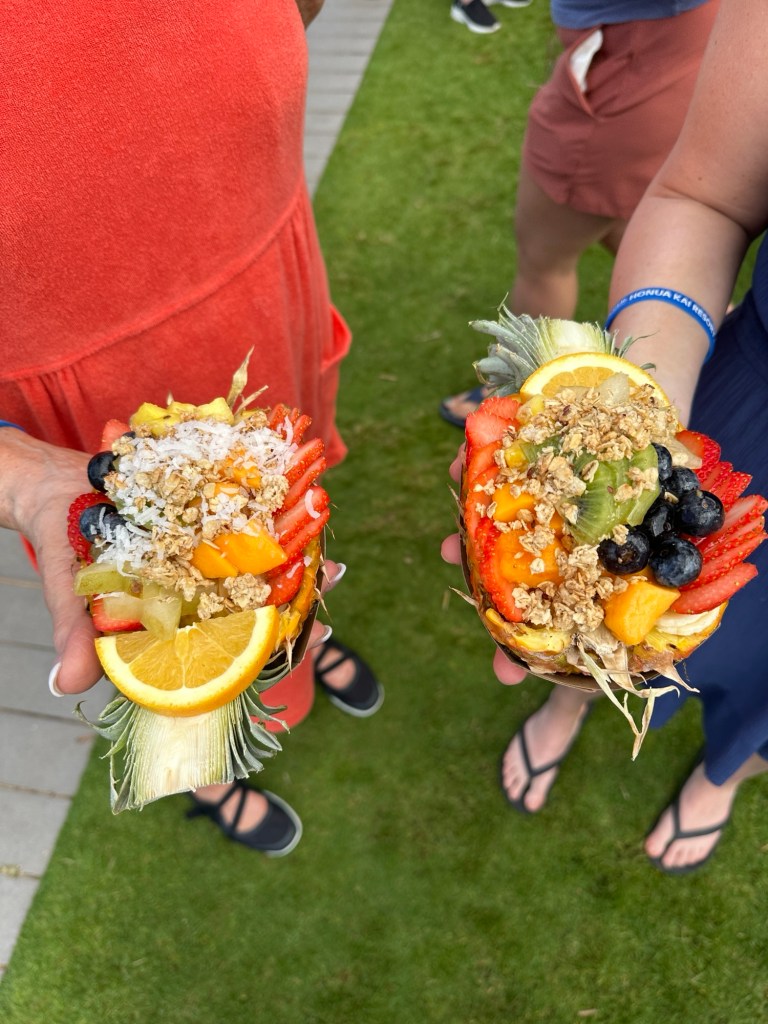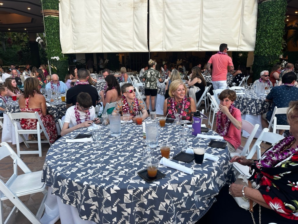 Since we spent the prior 3 days traveling around the island, our goal was a relaxing day at the resort. We started off on the beach, playing in the water for a bit before moving to the pool. Instead of fighting for a lounger at the crack of dawn and’ ‘reserving’ it with a flip flop that ends up being stolen. We rented a cabana, this can get pricey, but we find it is worth it for our family to order food and relax in comfortable chairs. Our resort had a slide for the kids and 3 different pools for them to enjoy. I had the best pineapple lemonade, and my mother-in-law had a fresh fruit served in a pineapple. Lunch was from Duke’s Beach house; I took a risk with ahi tuna tacos and the kids had burgers. We hung by the pool until about 3:00 pm. Then we needed to get ready for the Luau.