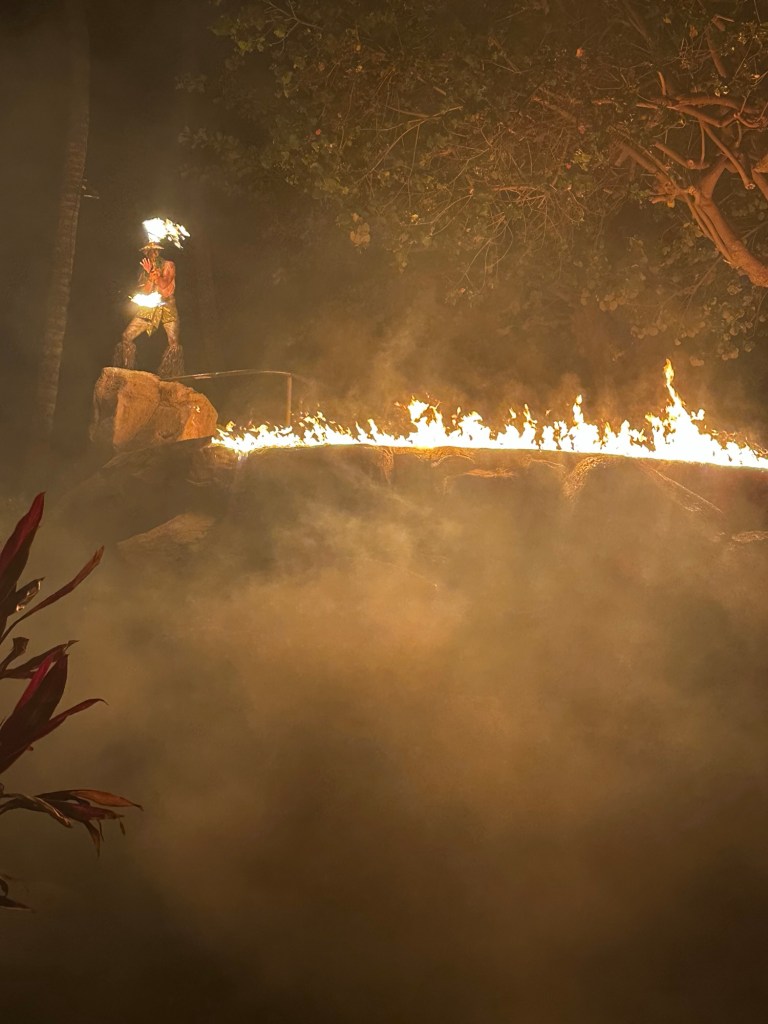 The performers were so talented! We truly enjoyed the performances, and I appreciate how they showcased the various cultures of the Polynesian islands. There was a point where they invited the audience onstage to learn a traditional Hula dance. Stella and Ford both jumped on stage to take part. As the night progressed a man climbed a coconut tree with his bare hands and feet! The show lasted a full 2 hours with constant entertainment while taking us on educational journey. At the end I realized that the music for the show was sang live by 4 people at the front! Every person was important to the show and made a great experience for all. I definitely recommend attending this one if there is room in the budget.